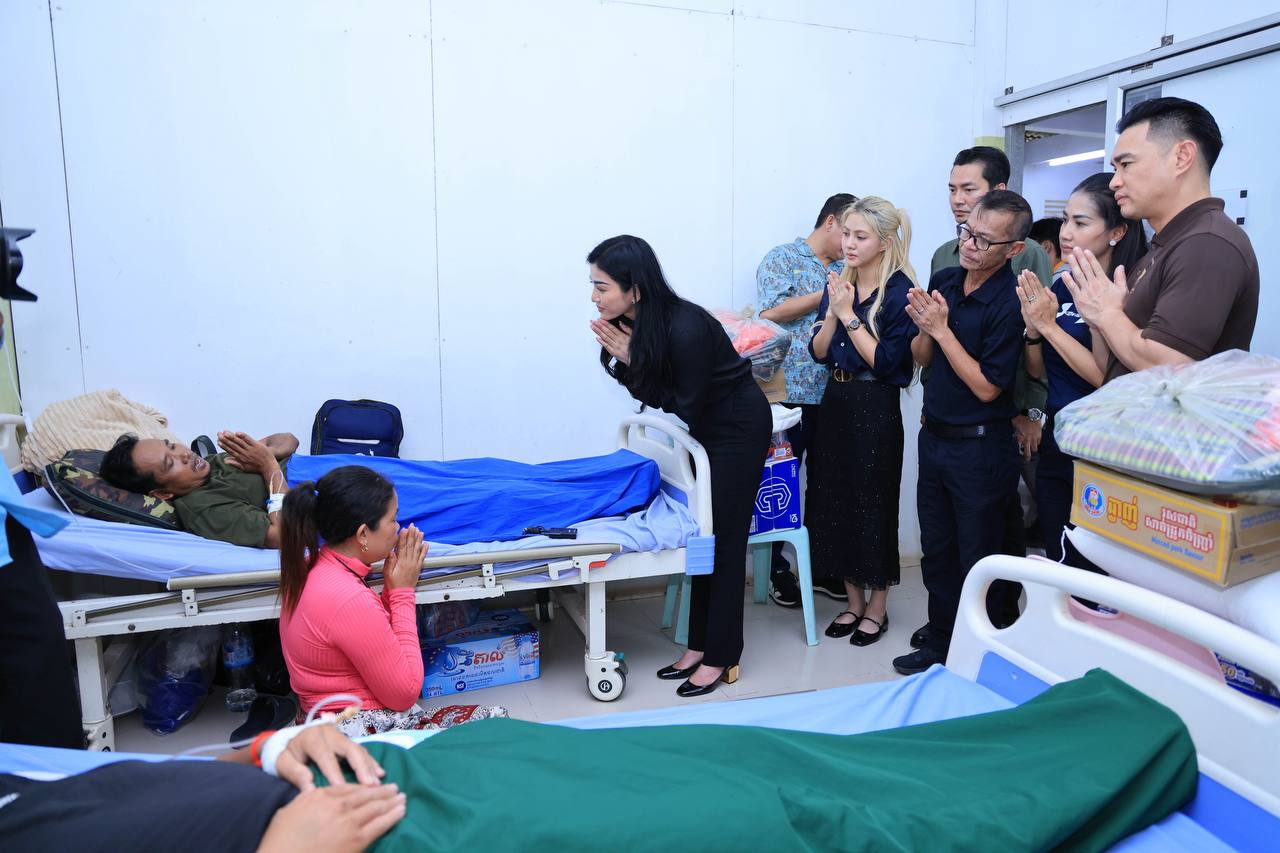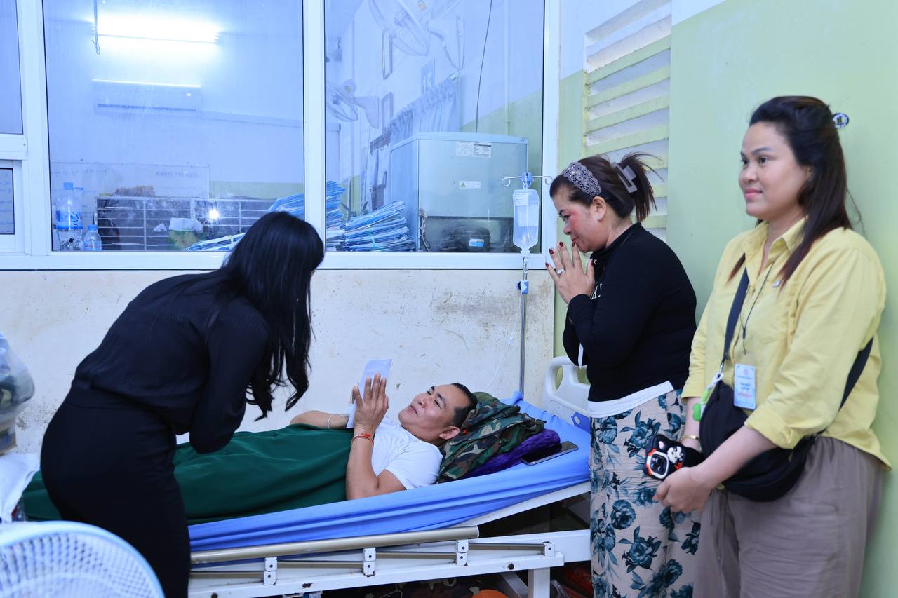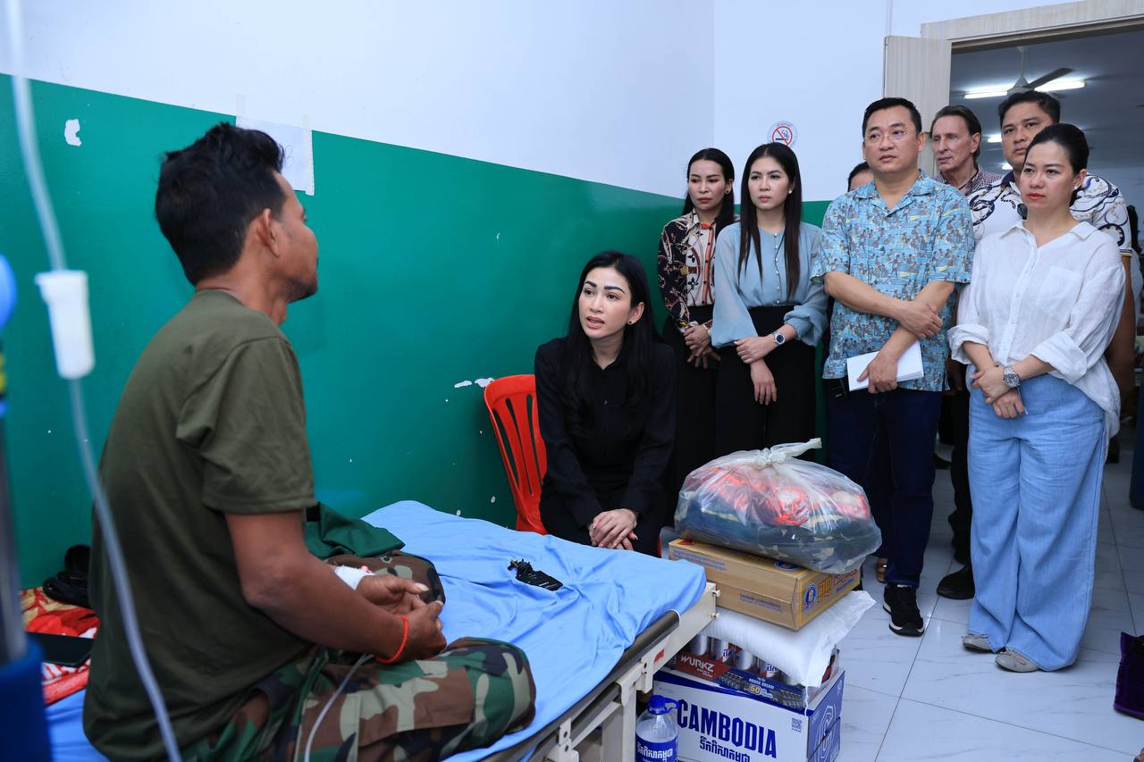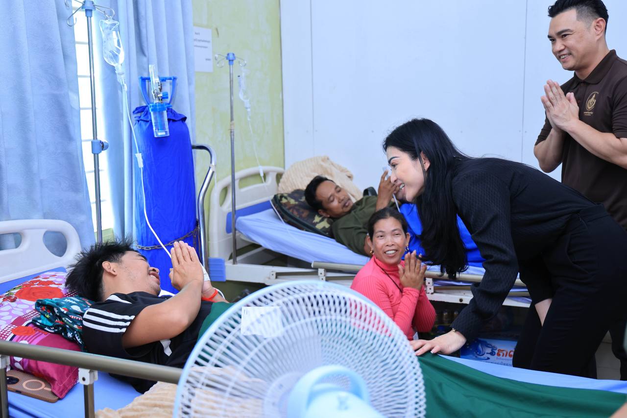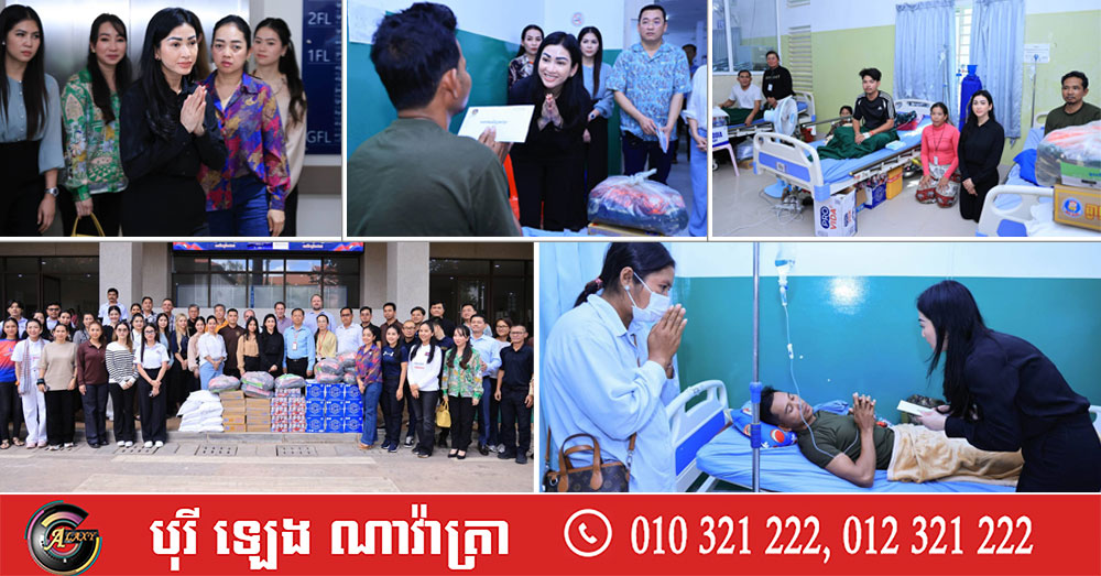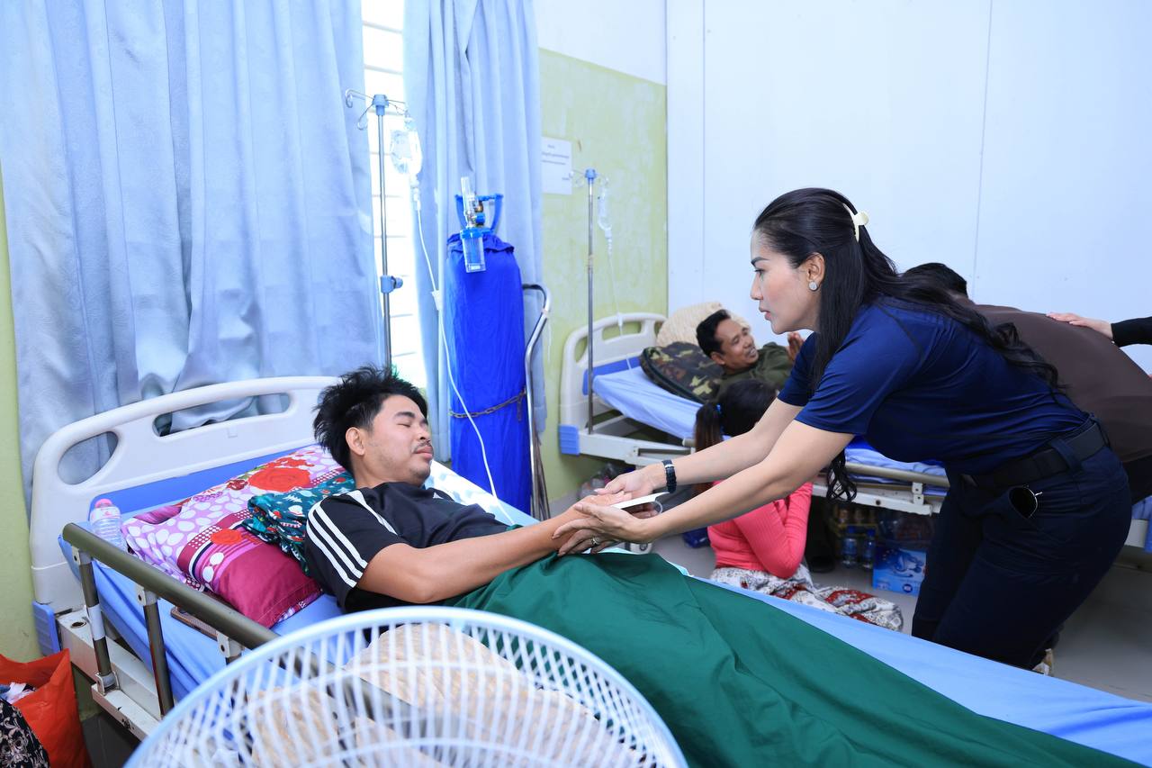 (សៀមរាប)៖ ក្នុងនាមអនុប្រធានក្រុមប្រឹក្សាភិបាលក្រុមហ៊ុនរ៉ូយ៉ាល់គ្រុប និងជាប្រធានសមាគមសិល្បករខ្មែរ លោកជំទាវអ្នកឧកញ៉ា ម៉ៅ ចំណាន គិតម៉េង អនុប្រធានមូលនិធិទ្រទ្រង់ជនភៀសសឹក ជំនួសមុខឱ្យអ្នកឧកញ៉ា គិត ម៉េង កាលពីរសៀលថ្ងៃទី១៩ ខែសីហា ឆ្នាំ២០២៥នេះ បាននាំយកនូវសម្លៀកបំពាក់ សម្ភារៈប្រើប្រាស់ និងគ្រឿងឧបភោគ-បរិភោគ រួមជាមួយនឹងថវិកាមួយចំនួន ចុះសួរសុខទុក្ខដល់វីរកងទ័ព ដែលកំពុងសម្រាកព្យាបាលរបួស ដែលរងគ្រោះពីការវាយប្រហារនៅក្នុងអំឡុងសង្គ្រាមឈ្លានពានរបស់សៀមមកលើប្រទេសកម្ពុជា។