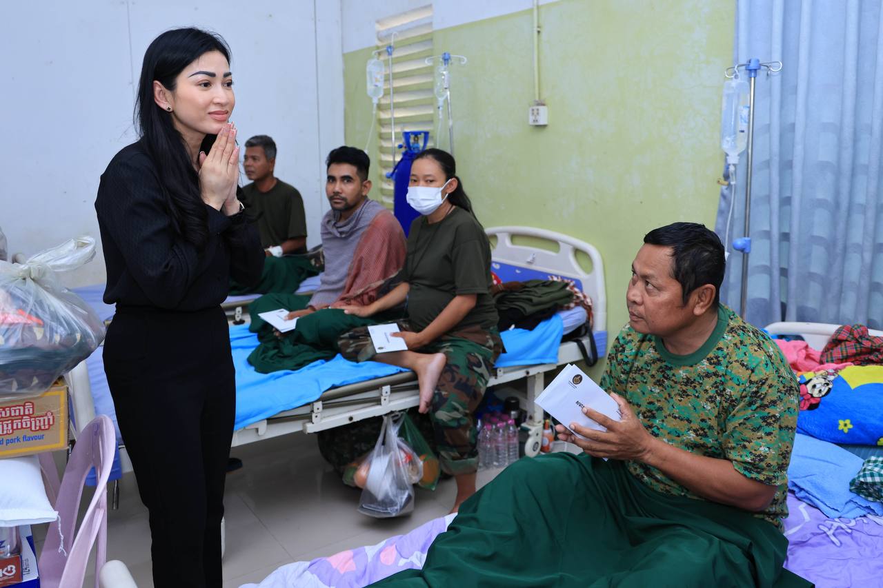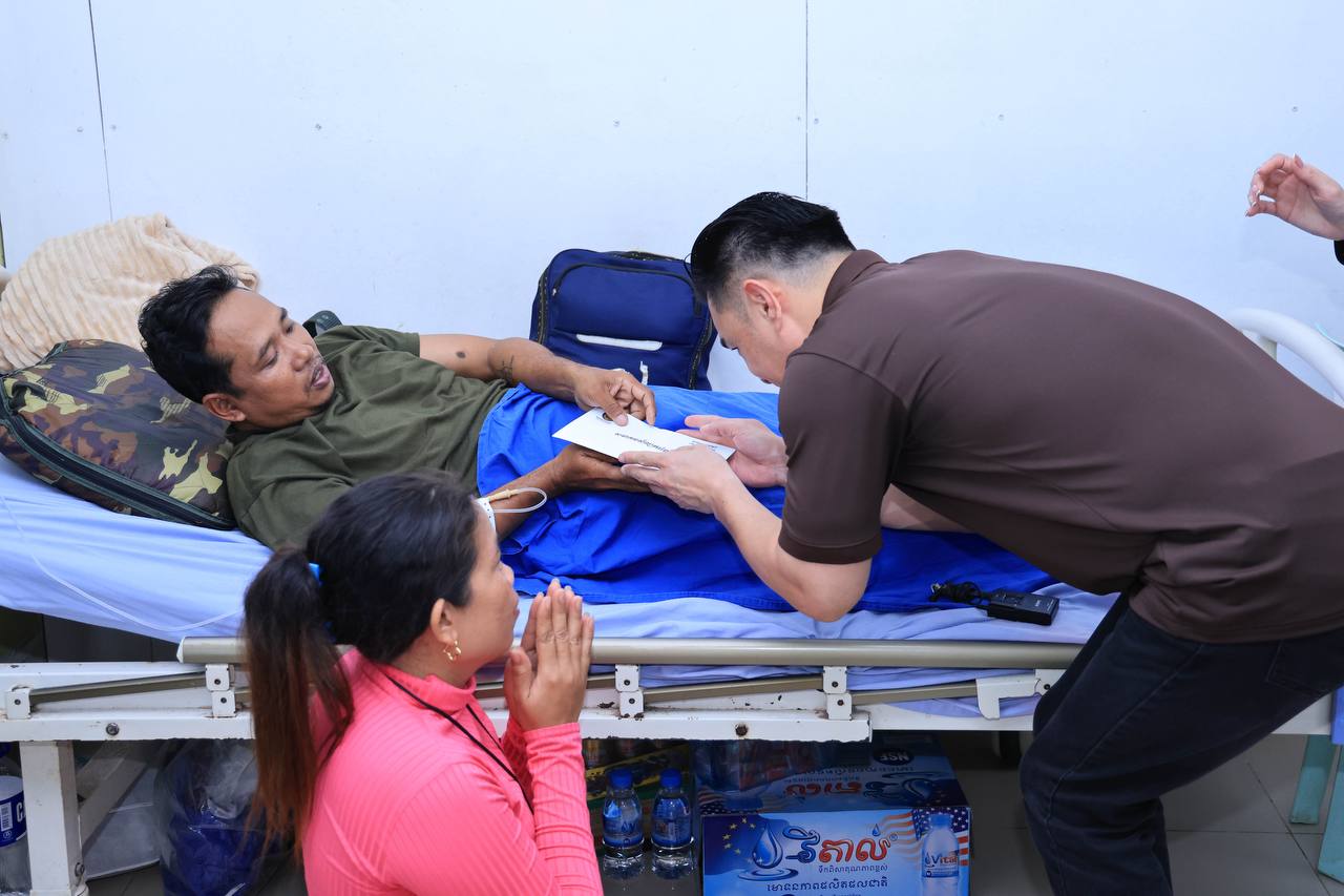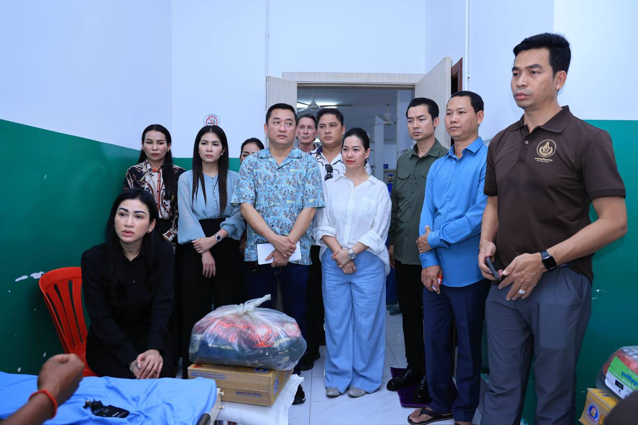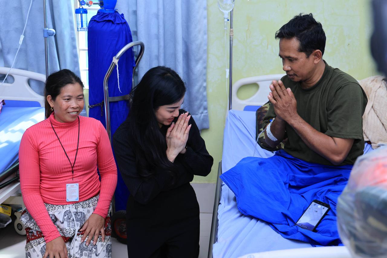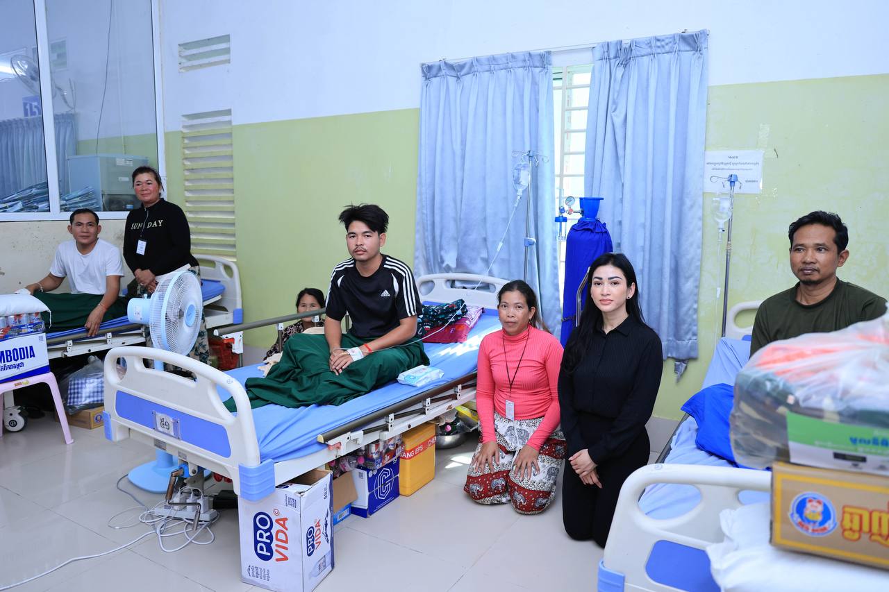 (សៀមរាប)៖ ក្នុងនាមអនុប្រធានក្រុមប្រឹក្សាភិបាលក្រុមហ៊ុនរ៉ូយ៉ាល់គ្រុប និងជាប្រធានសមាគមសិល្បករខ្មែរ លោកជំទាវអ្នកឧកញ៉ា ម៉ៅ ចំណាន គិតម៉េង អនុប្រធានមូលនិធិទ្រទ្រង់ជនភៀសសឹក ជំនួសមុខឱ្យអ្នកឧកញ៉ា គិត ម៉េង កាលពីរសៀលថ្ងៃទី១៩ ខែសីហា ឆ្នាំ២០២៥នេះ បាននាំយកនូវសម្លៀកបំពាក់ សម្ភារៈប្រើប្រាស់ និងគ្រឿងឧបភោគ-បរិភោគ រួមជាមួយនឹងថវិកាមួយចំនួន ចុះសួរសុខទុក្ខដល់វីរកងទ័ព ដែលកំពុងសម្រាកព្យាបាលរបួស ដែលរងគ្រោះពីការវាយប្រហារនៅក្នុងអំឡុងសង្គ្រាមឈ្លានពានរបស់សៀមមកលើប្រទេសកម្ពុជា។