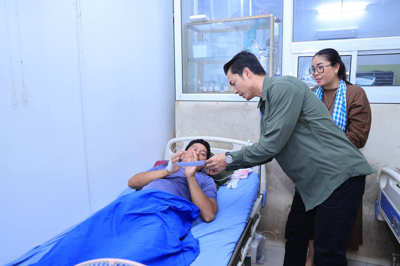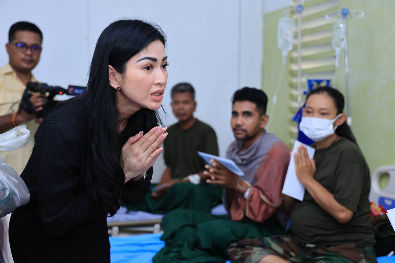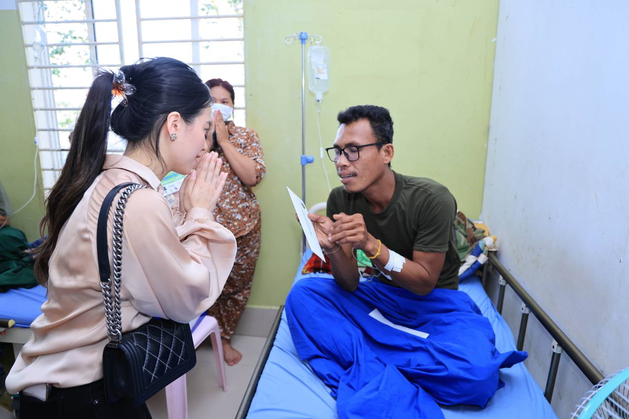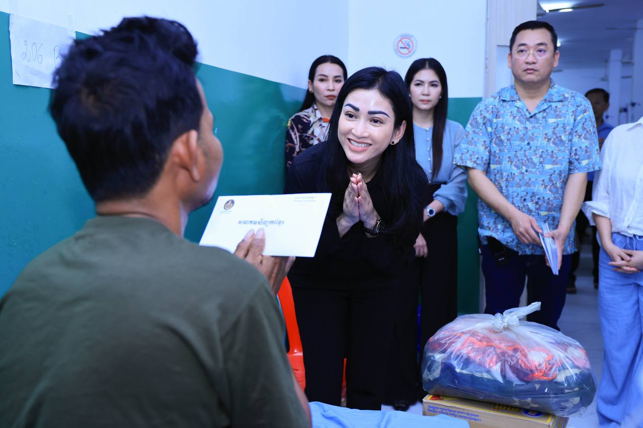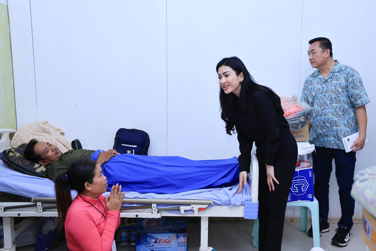 (សៀមរាប)៖ ក្នុងនាមអនុប្រធានក្រុមប្រឹក្សាភិបាលក្រុមហ៊ុនរ៉ូយ៉ាល់គ្រុប និងជាប្រធានសមាគមសិល្បករខ្មែរ លោកជំទាវអ្នកឧកញ៉ា ម៉ៅ ចំណាន គិតម៉េង អនុប្រធានមូលនិធិទ្រទ្រង់ជនភៀសសឹក ជំនួសមុខឱ្យអ្នកឧកញ៉ា គិត ម៉េង កាលពីរសៀលថ្ងៃទី១៩ ខែសីហា ឆ្នាំ២០២៥នេះ បាននាំយកនូវសម្លៀកបំពាក់ សម្ភារៈប្រើប្រាស់ និងគ្រឿងឧបភោគ-បរិភោគ រួមជាមួយនឹងថវិកាមួយចំនួន ចុះសួរសុខទុក្ខដល់វីរកងទ័ព ដែលកំពុងសម្រាកព្យាបាលរបួស ដែលរងគ្រោះពីការវាយប្រហារនៅក្នុងអំឡុងសង្គ្រាមឈ្លានពានរបស់សៀមមកលើប្រទេសកម្ពុជា។