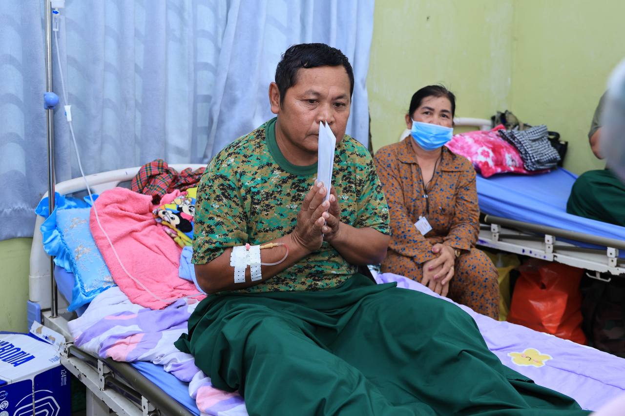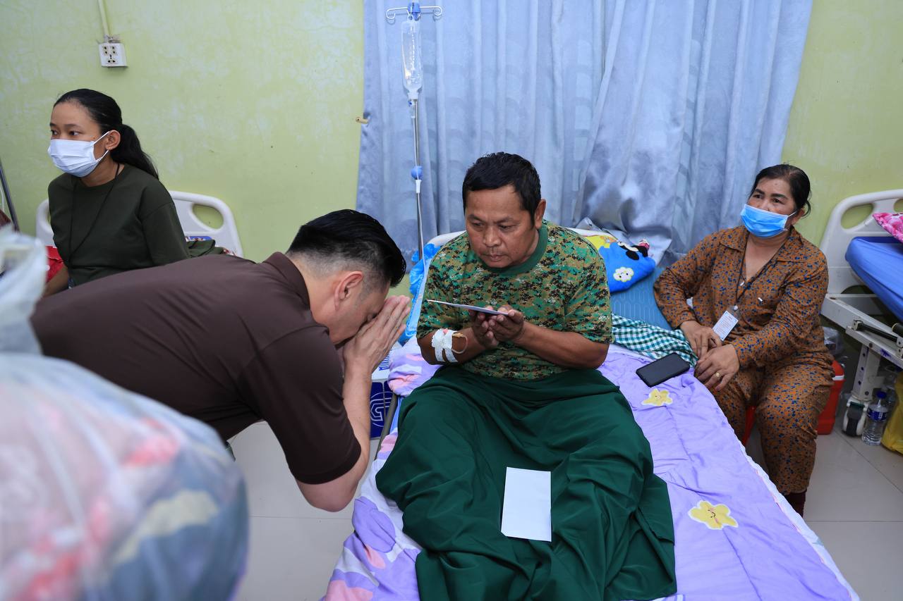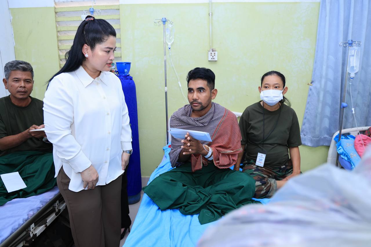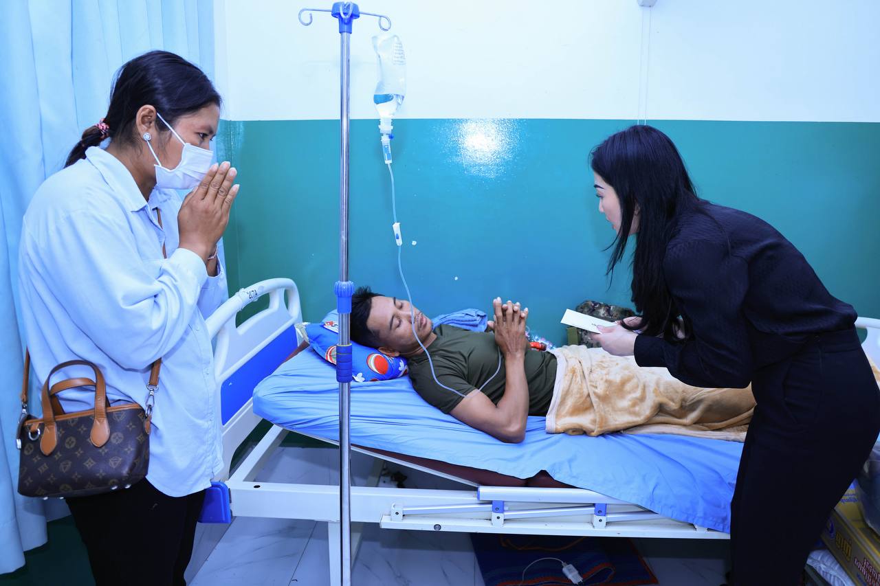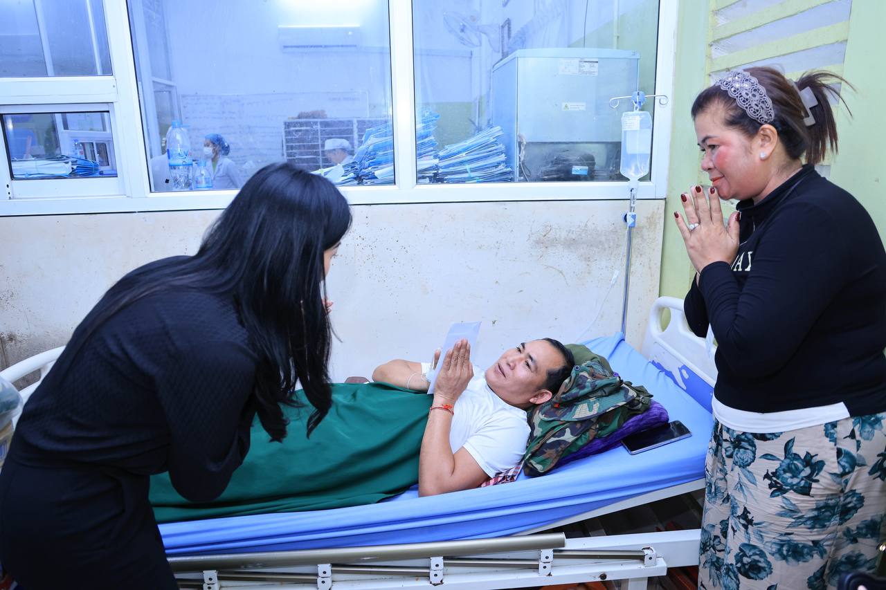 លោកជំទាវអ្នកឧកញ៉ា ម៉ៅ ចំណាន ដឹកនាំអ្នកសិល្បៈ និងថ្នាក់ដឹកនាំក្រុមហ៊ុន រ៉ូយ៉ាល់ គ្រុប សួរសុខទុក្ខវីរកងទ័ព កំពុងព្យាបាលរបួសពីសង្គ្រាមឈ្លានពានរបស់សៀម នៅមន្ទីរពេទ្យបង្អែកខេត្តសៀមរាប
