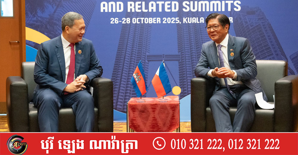 (ម៉ាឡេស៊ី)៖ ក្នុងឱកាសចូលរួមកិច្ចប្រជុំកំពូលអាស៊ាន នាព្រឹកថ្ងៃទី២៦ ខែតុលា ឆ្នាំ២០២៥នេះ សម្តេចមហាបវរធិបតី ហ៊ុន ម៉ាណែត នាយករដ្ឋមន្ត្រីនៃកម្ពុជា បានជួបពិភាក្សាជាមួយ លោក Ferdinand Romualdez Marcos Jr. ប្រធានាធិបតី នៃសាធារណរដ្ឋហ្វីលីពីន នៅទីក្រុងកូឡាឡាពួ ប្រទេសម៉ាឡេស៊ី។