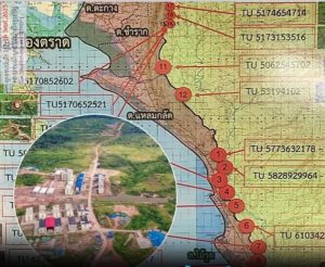 ក្នុងករណីនេះ ភាគីថៃបានអះអាងថា កម្ពុជា «ទន្ទ្រានយកទឹកដីថៃ» នៅខេត្តត្រាត ចំនួន ១៧ ទីតាំង រួមមាន៖